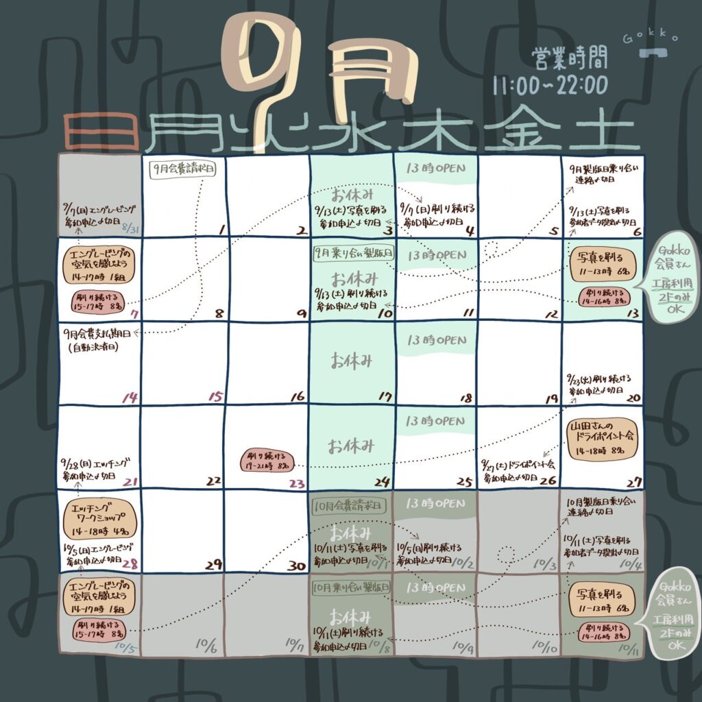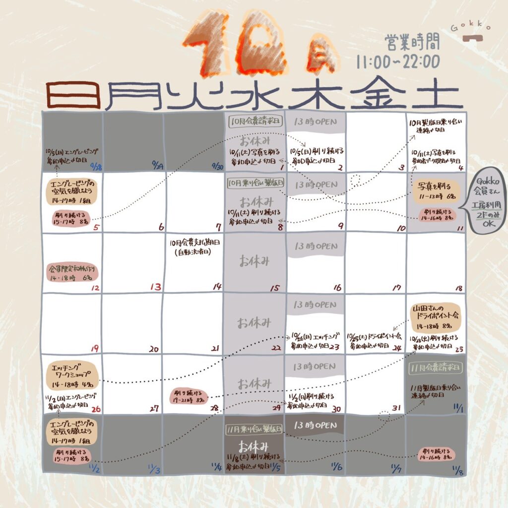 営業日カレンダーで空白になっている日は、営業時間内での予約が可能です。 特にカレンダーに時間の記載が無い場合、予約は受け付けております。 ご利用の3日前までに、利用したい日時と大まかな作業内容をご連絡ください。